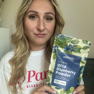 "Az áfonyapor az én titkos trükköm egy gyors és tápláló nasihoz – bárhová is megyek.”